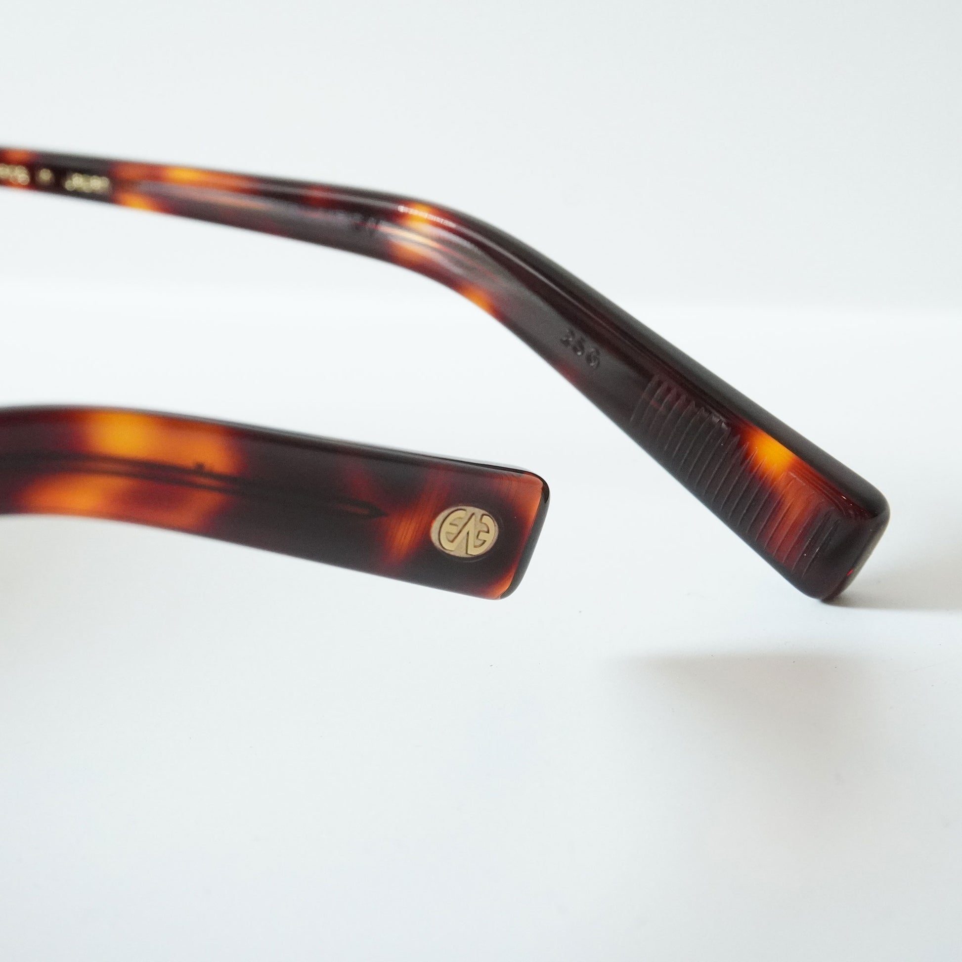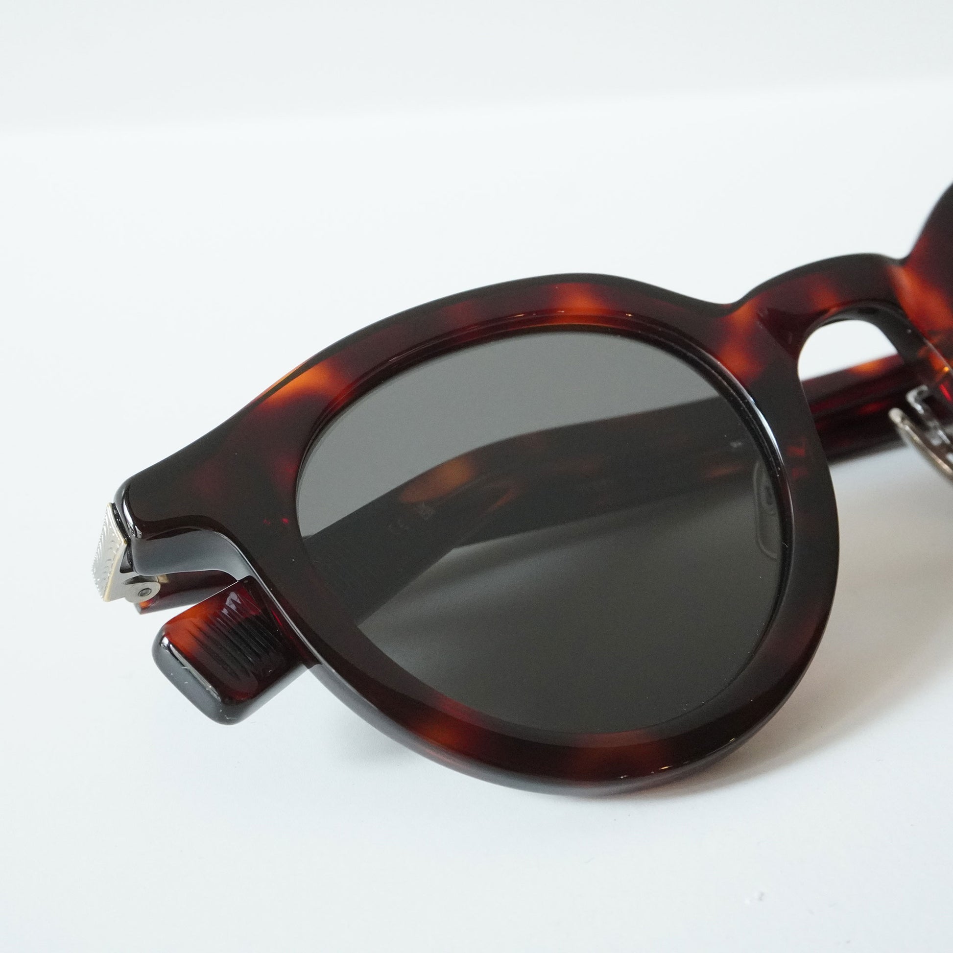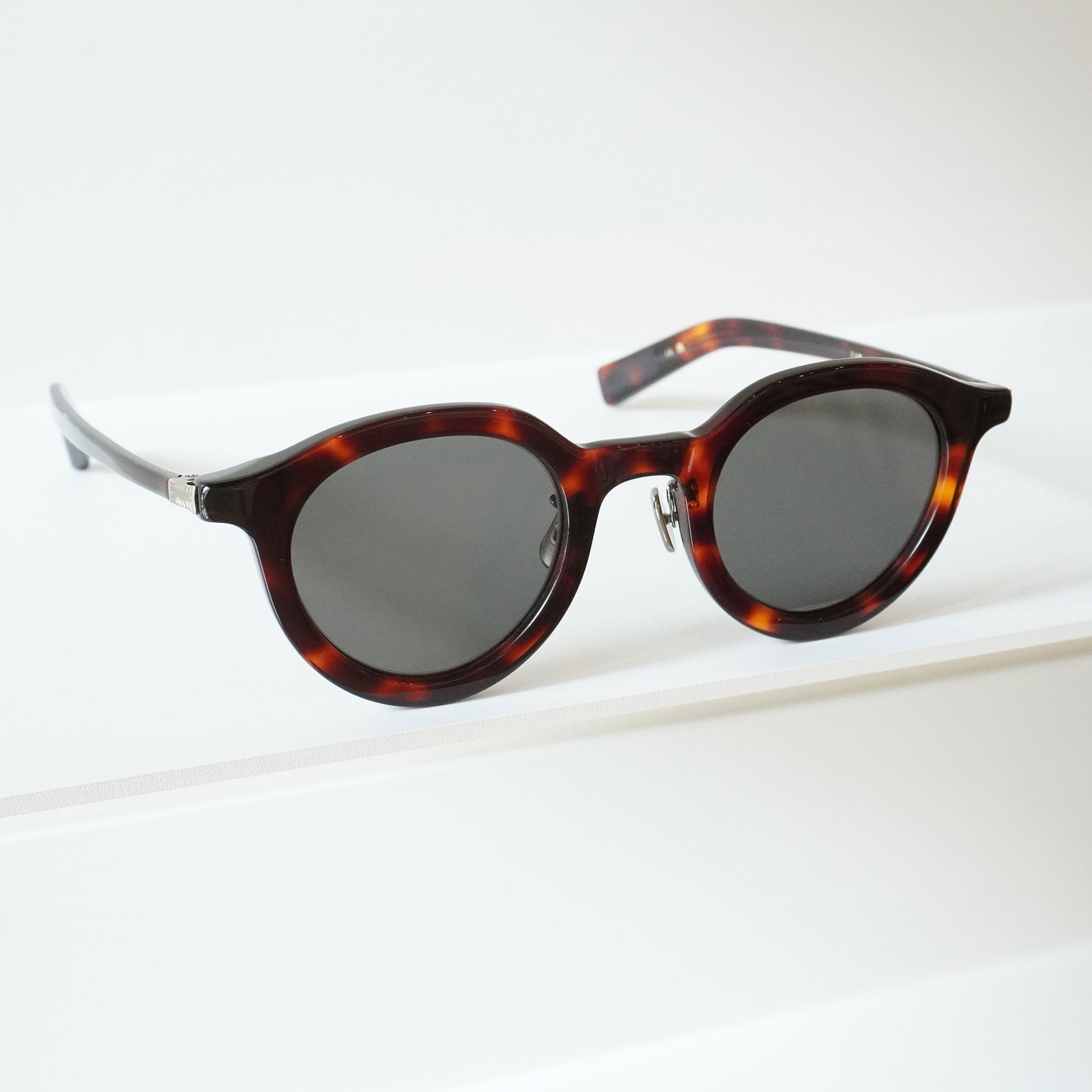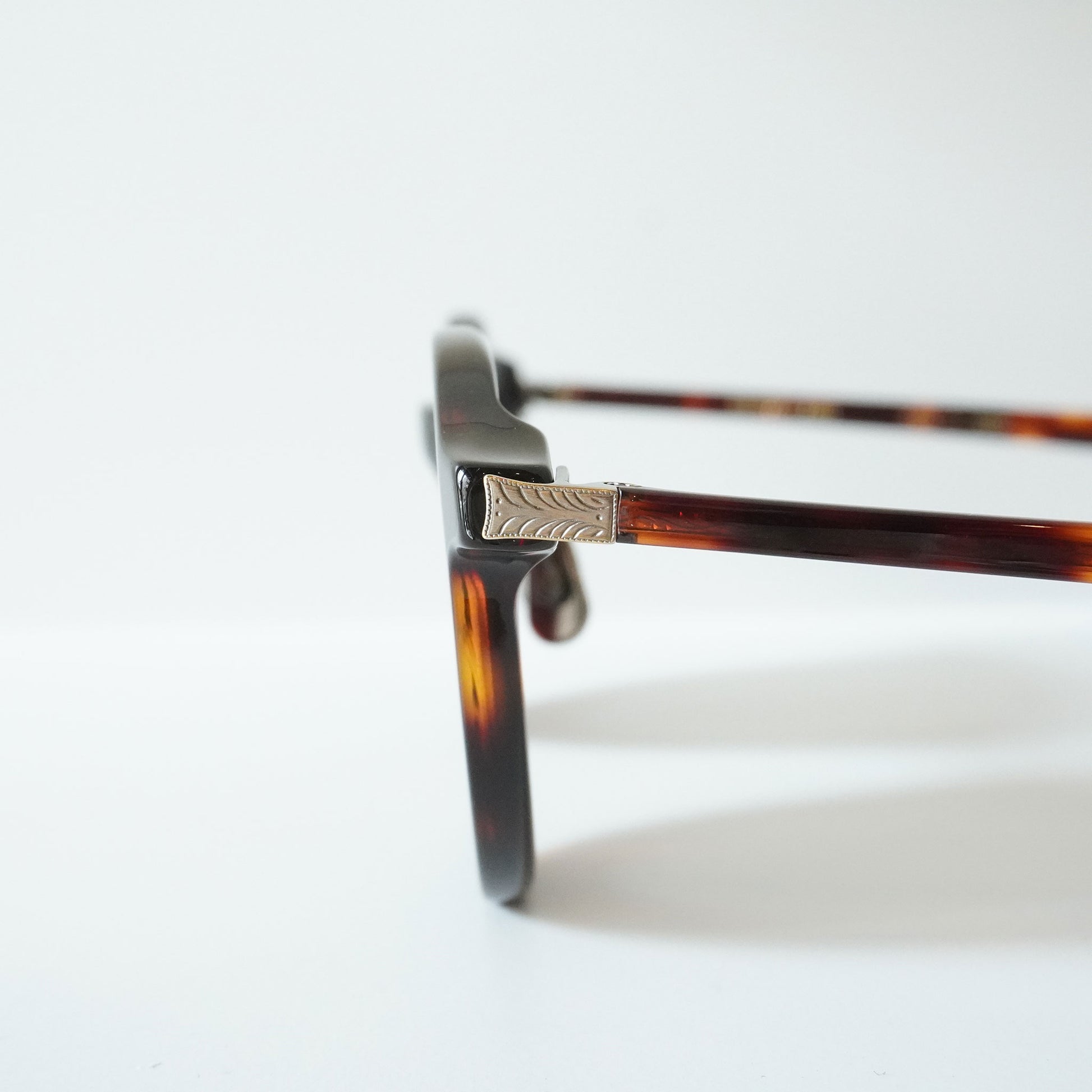新たにオリジナルで作製した日本製の偏光フラットガラスレンズを採用したモデル。この特別なレンズに合わせて開発したヨロイパーツは横から座掘りを入れて取り付けたパーツを後ろからネジ止めするという特殊な構造。ヨロイの柄が持つクラシックな印象に、少しモダンなイメージでデザインした玉型を組み合わせ、古さと新しさが同居する独創的な雰囲気に仕上げた。上部のラインがシャープな印象のボストン型の740と、智が落ちた柔らかいラインのウェリントン型の741の2型で展開。