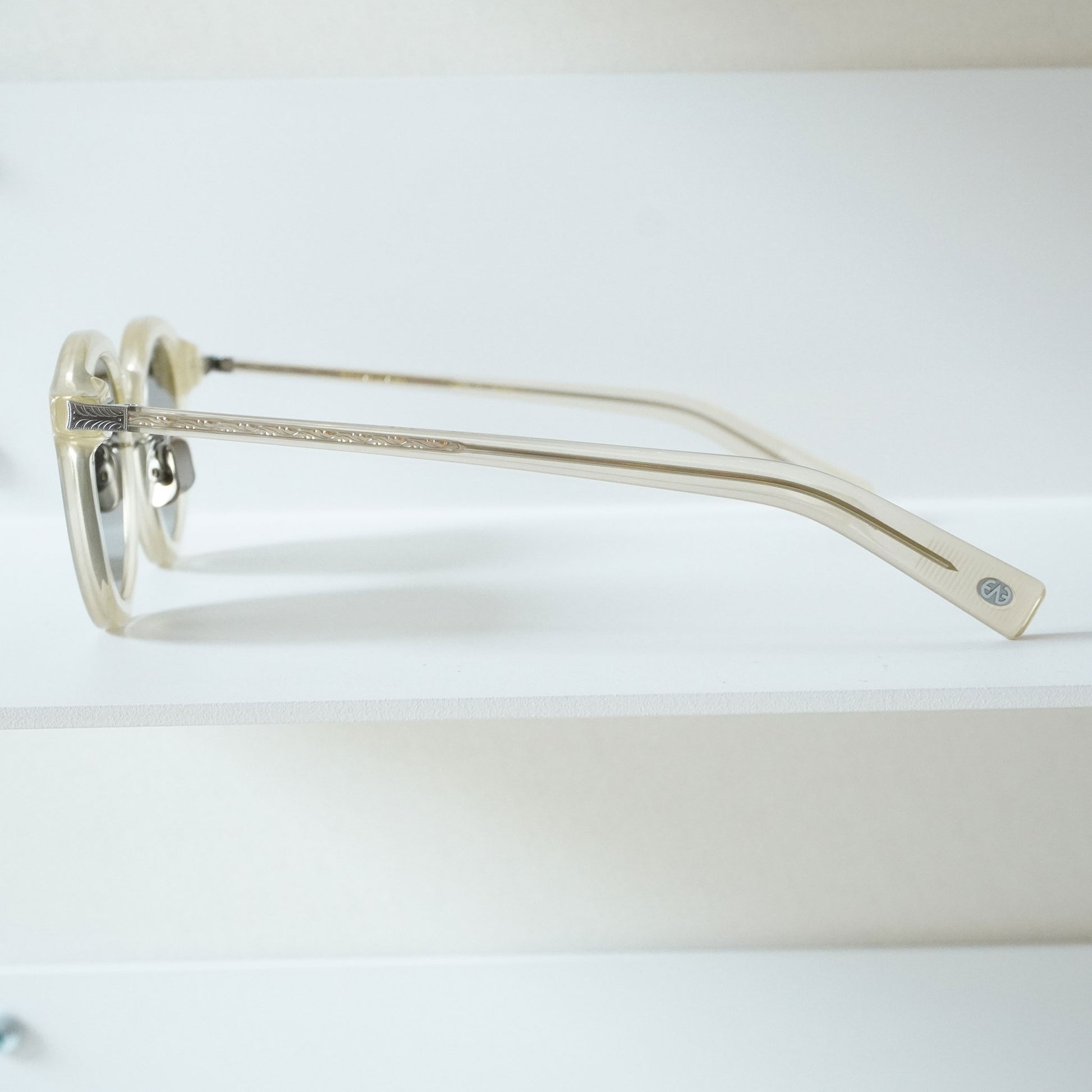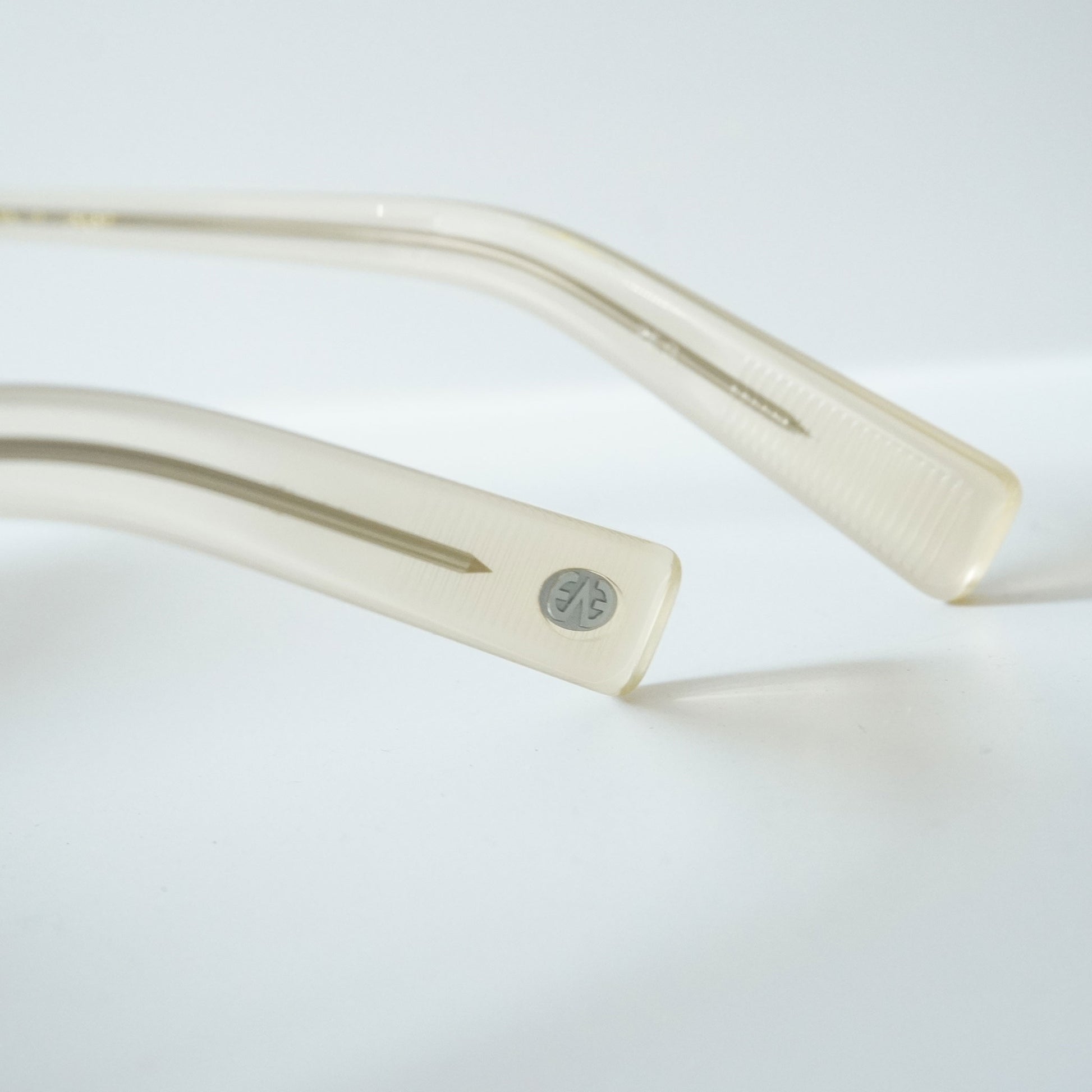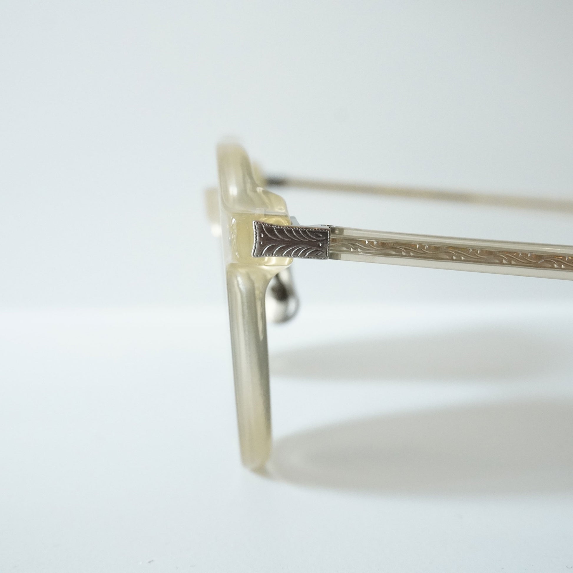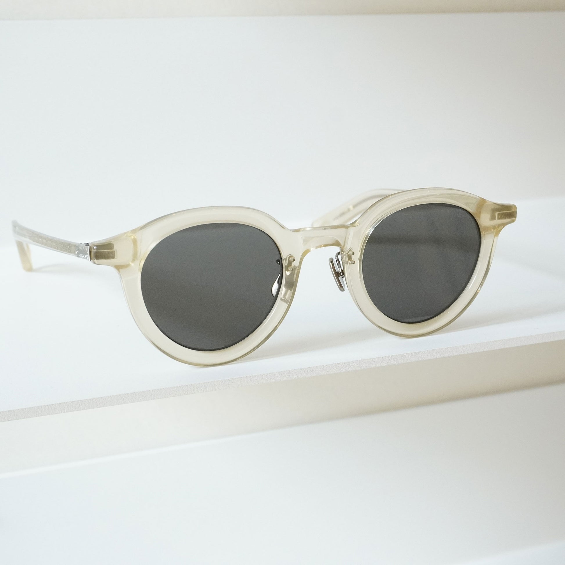 新たにオリジナルで作製した日本製の偏光フラットガラスレンズを採用したモデル。この特別なレンズに合わせて開発したヨロイパーツは横から座掘りを入れて取り付けたパーツを後ろからネジ止めするという特殊な構造。ヨロイの柄が持つクラシックな印象に、少しモダンなイメージでデザインした玉型を組み合わせ、古さと新しさが同居する独創的な雰囲気に仕上げた。上部のラインがシャープな印象のボストン型の740と、智が落ちた柔らかいラインのウェリントン型の741の2型で展開。