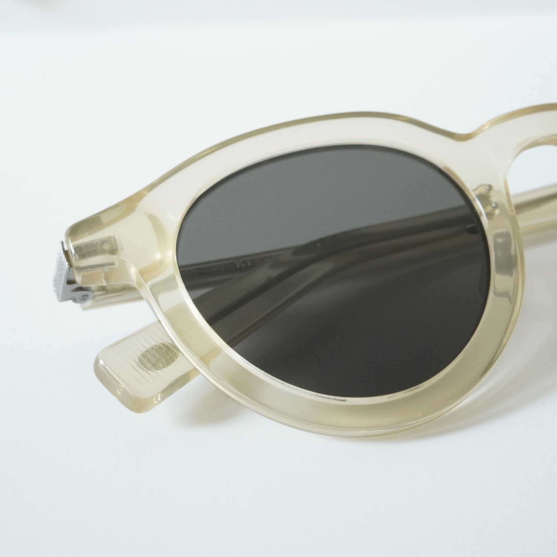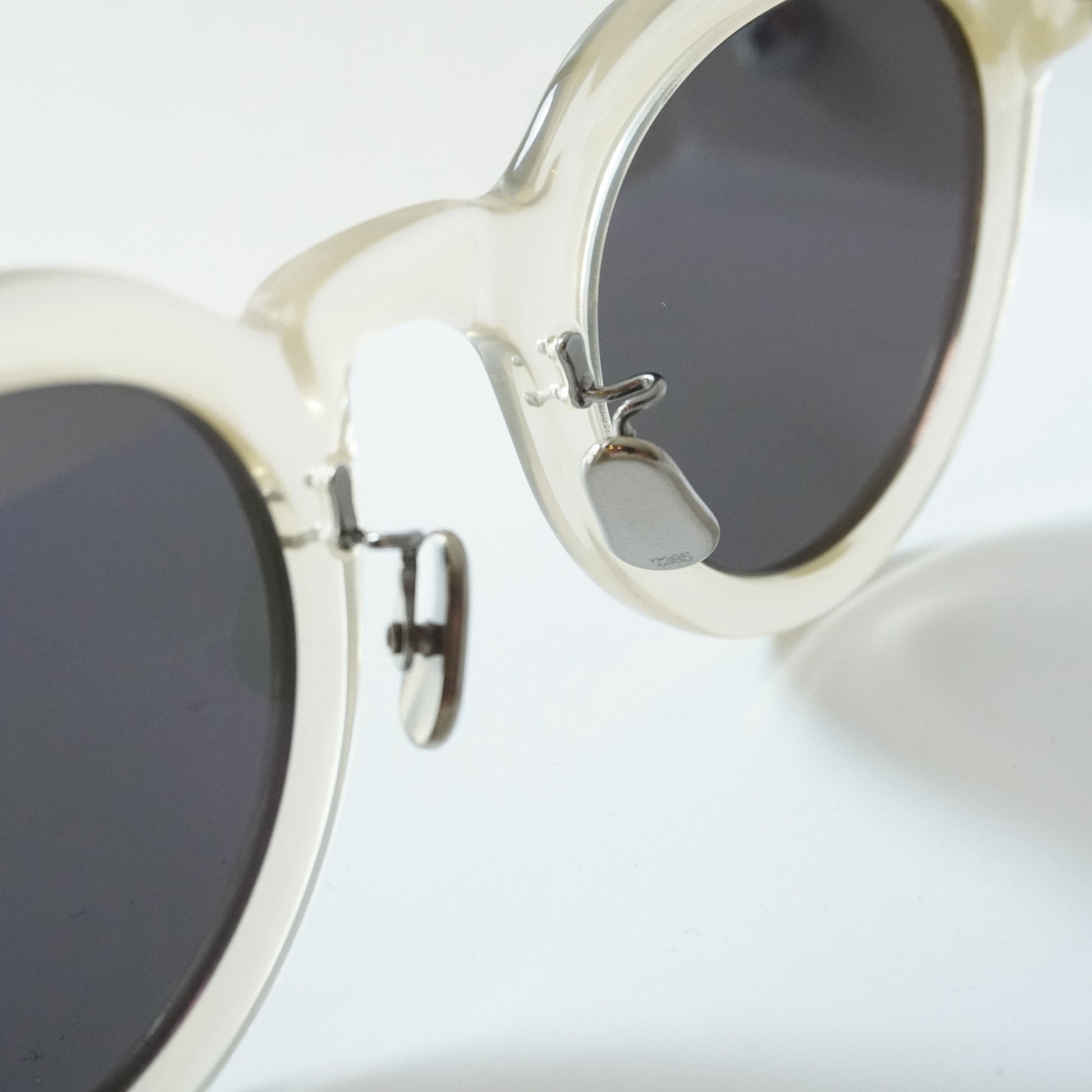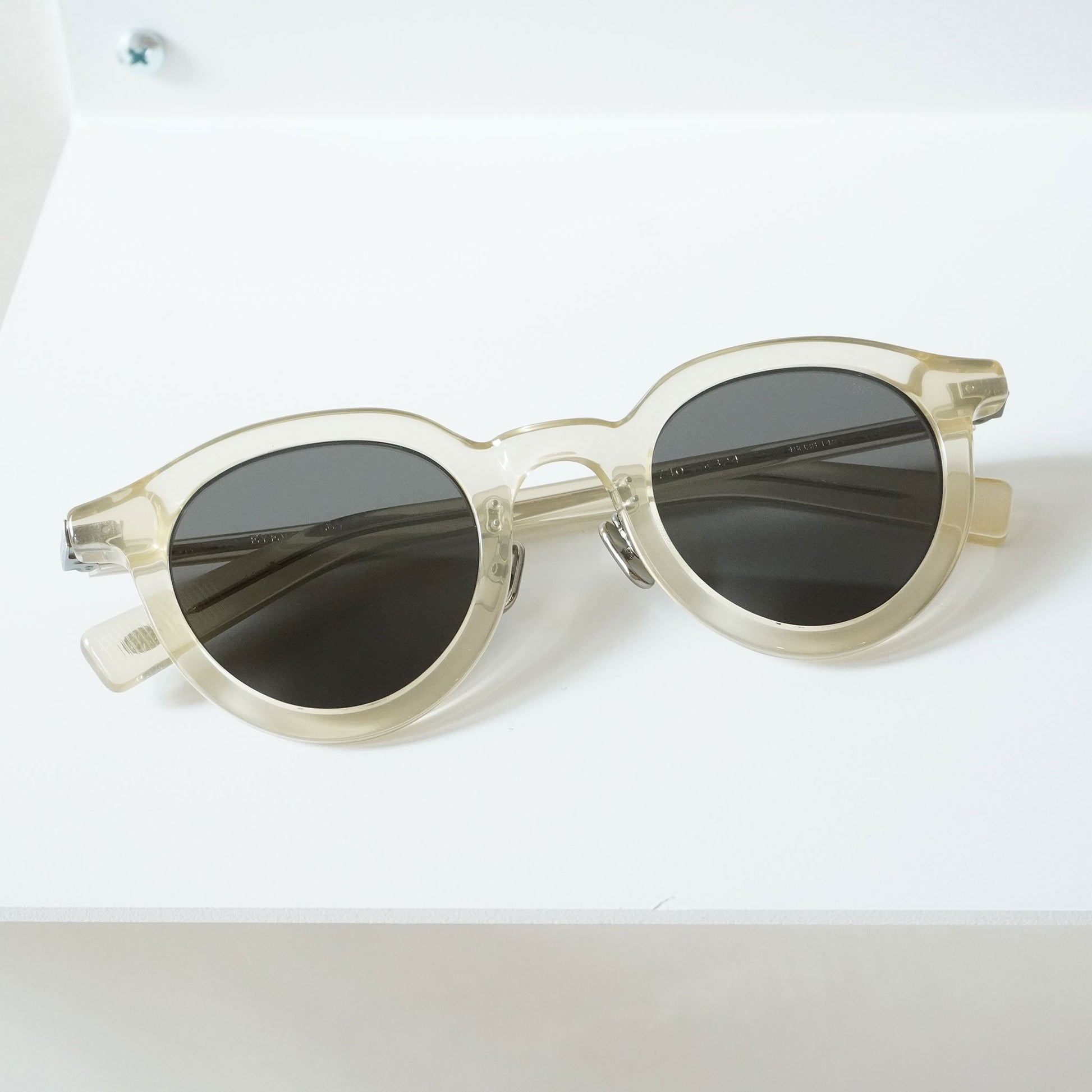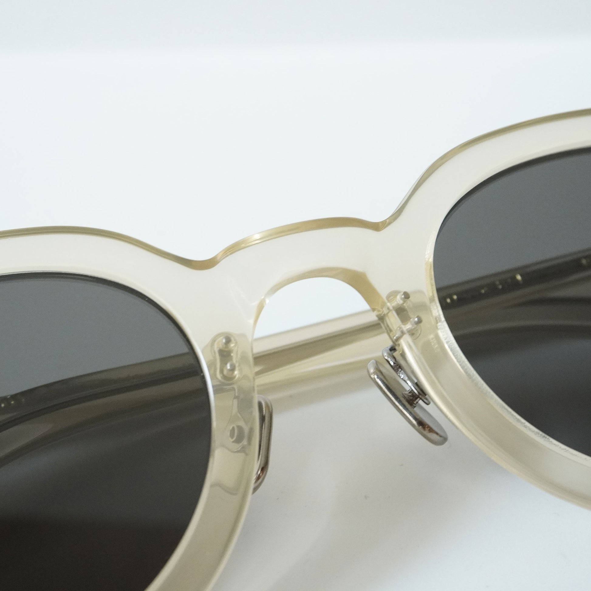 新たにオリジナルで作製した日本製の偏光フラットガラスレンズを採用したモデル。この特別なレンズに合わせて開発したヨロイパーツは横から座掘りを入れて取り付けたパーツを後ろからネジ止めするという特殊な構造。ヨロイの柄が持つクラシックな印象に、少しモダンなイメージでデザインした玉型を組み合わせ、古さと新しさが同居する独創的な雰囲気に仕上げた。上部のラインがシャープな印象のボストン型の740と、智が落ちた柔らかいラインのウェリントン型の741の2型で展開。