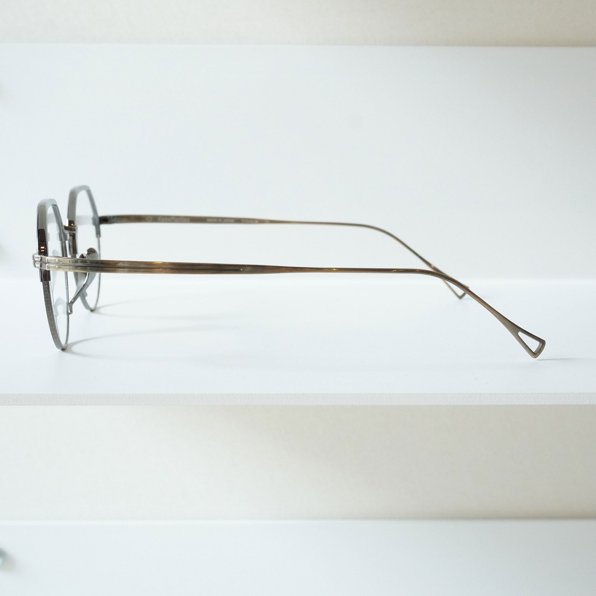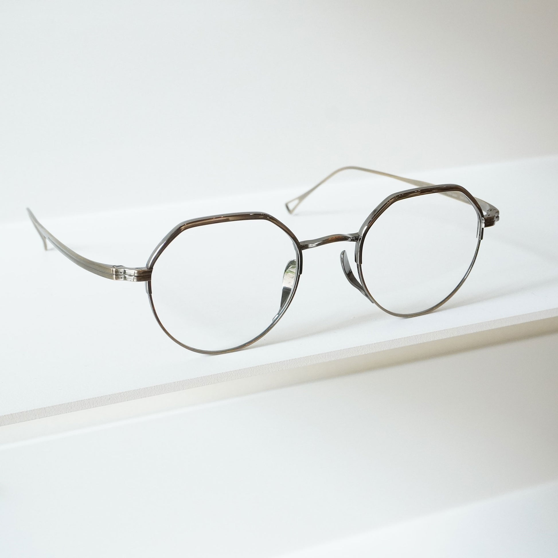 クラウンパントシェイプの上品なモデル。上部はメッキ塗装をしカラーの違いを楽しめるブローのようなデザインになっています。クラシックなデザインですが、やや大きめのサイズ感が今の時代に合うモデルです。