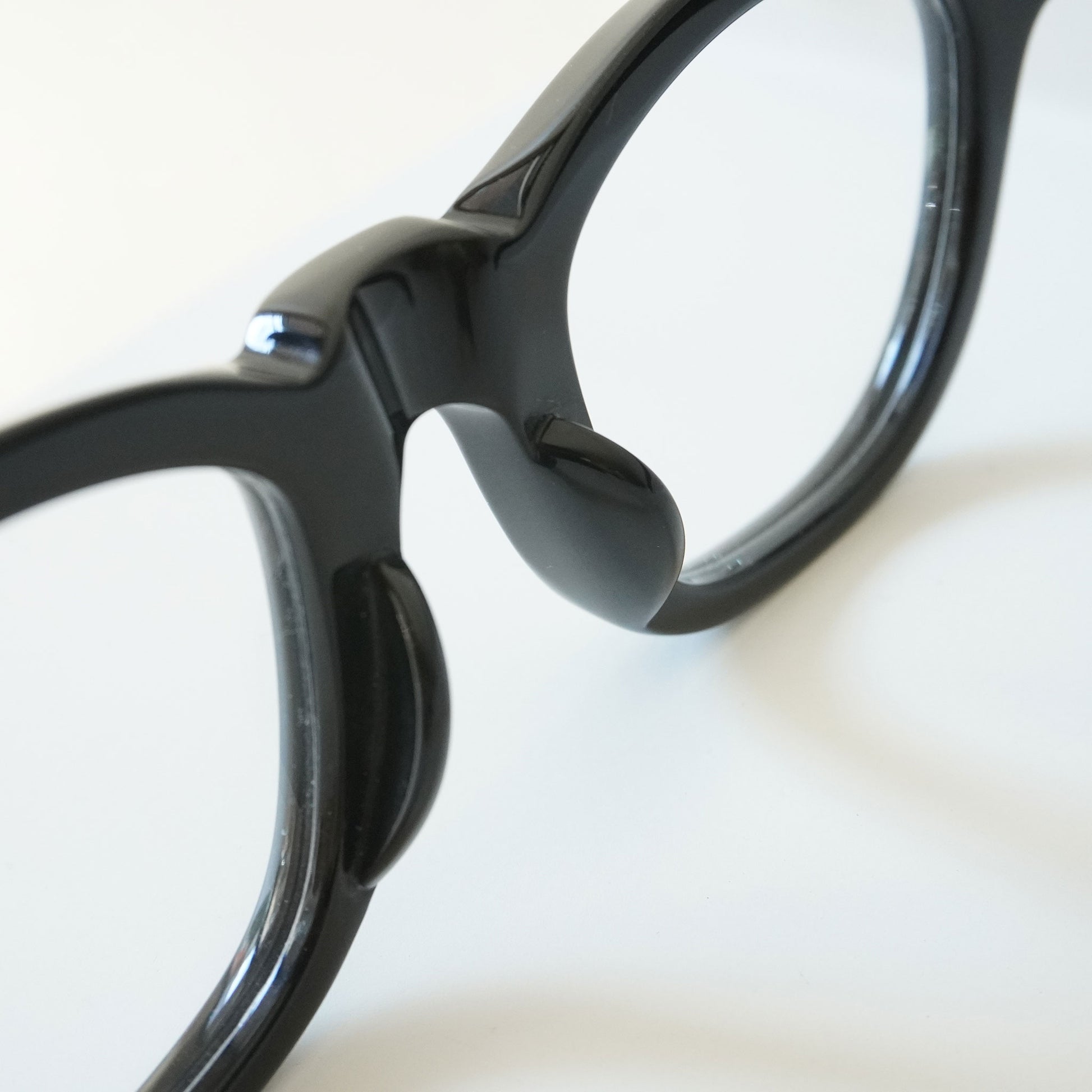1960年代のヴィンテージ感あふれるカッティングと先にかけて極太になるテンプルが特徴的なモデル。当時、アメリカのブランドがフランスで製造していたモデルを忠実に再現。シェイプはアメリカンクラシックなウェリントン型。掛けやすいデザインとギュパールの中ではやや大きめのサイズ感、幅広い方にフィットする待望のモデル。