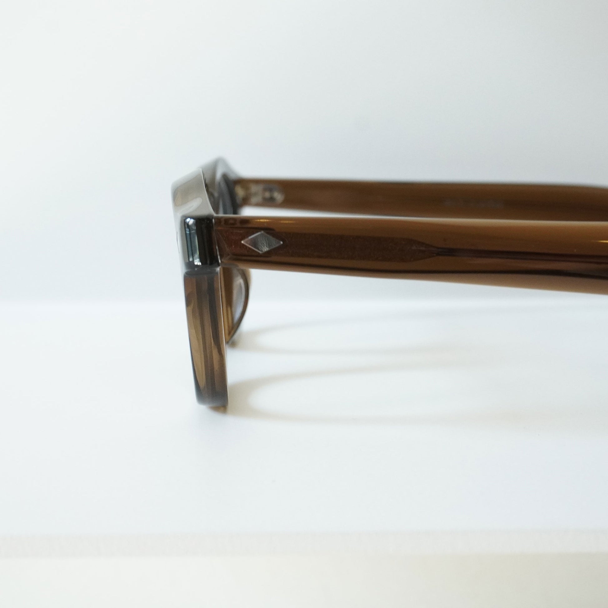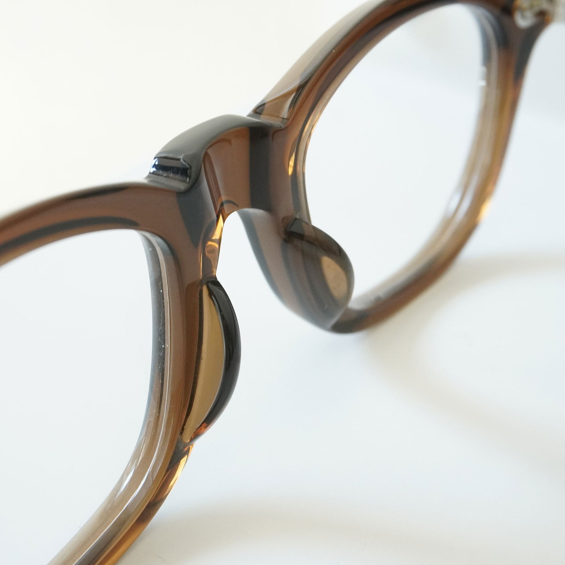1960年代のヴィンテージ感あふれるカッティングと先にかけて極太になるテンプルが特徴的なモデル。当時、アメリカのブランドがフランスで製造していたモデルを忠実に再現。シェイプはアメリカンクラシックなウェリントン型。掛けやすいデザインとギュパールの中ではやや大きめのサイズ感、幅広い方にフィットする待望のモデル。