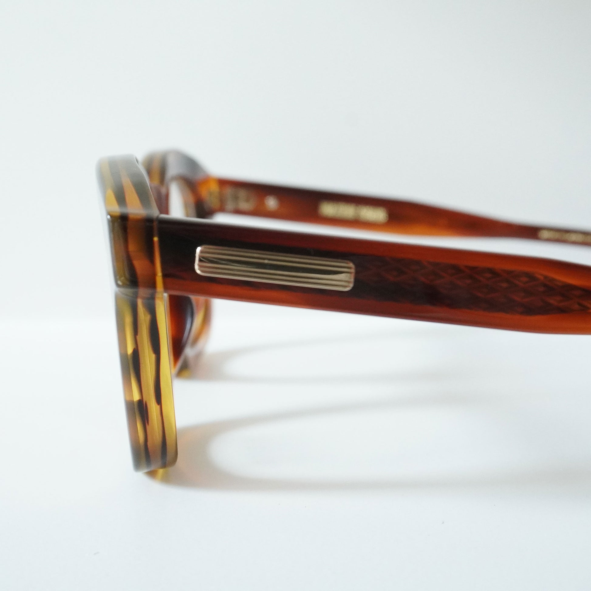 名前の由来: 故郷の近くにある頑固なアイルランド人のバーテンダーにちなんで名付けられたものです。ダフィーは頑固でタフな男で、このフレームもそれにちなんでタフな印象です。トップ ラインは眉に沿って丸みを帯びており、左右のレンズはテンプルの高さと同じノーズブリッジでつながっています。優しさとタフさを兼ね備えたフレームです。