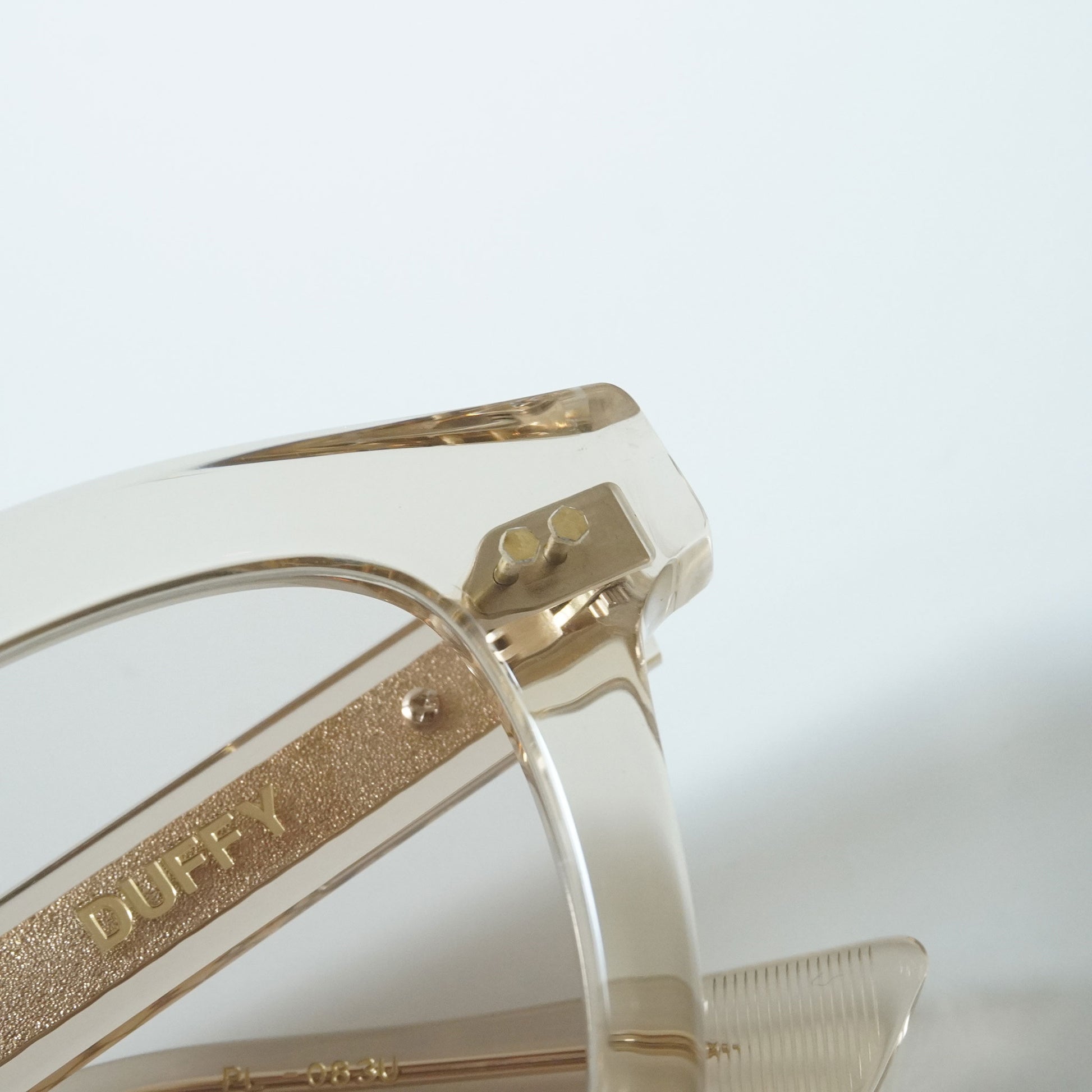 名前の由来: 故郷の近くにある頑固なアイルランド人のバーテンダーにちなんで名付けられたものです。ダフィーは頑固でタフな男で、このフレームもそれにちなんでタフな印象です。トップ ラインは眉に沿って丸みを帯びており、左右のレンズはテンプルの高さと同じノーズブリッジでつながっています。優しさとタフさを兼ね備えたフレームです。