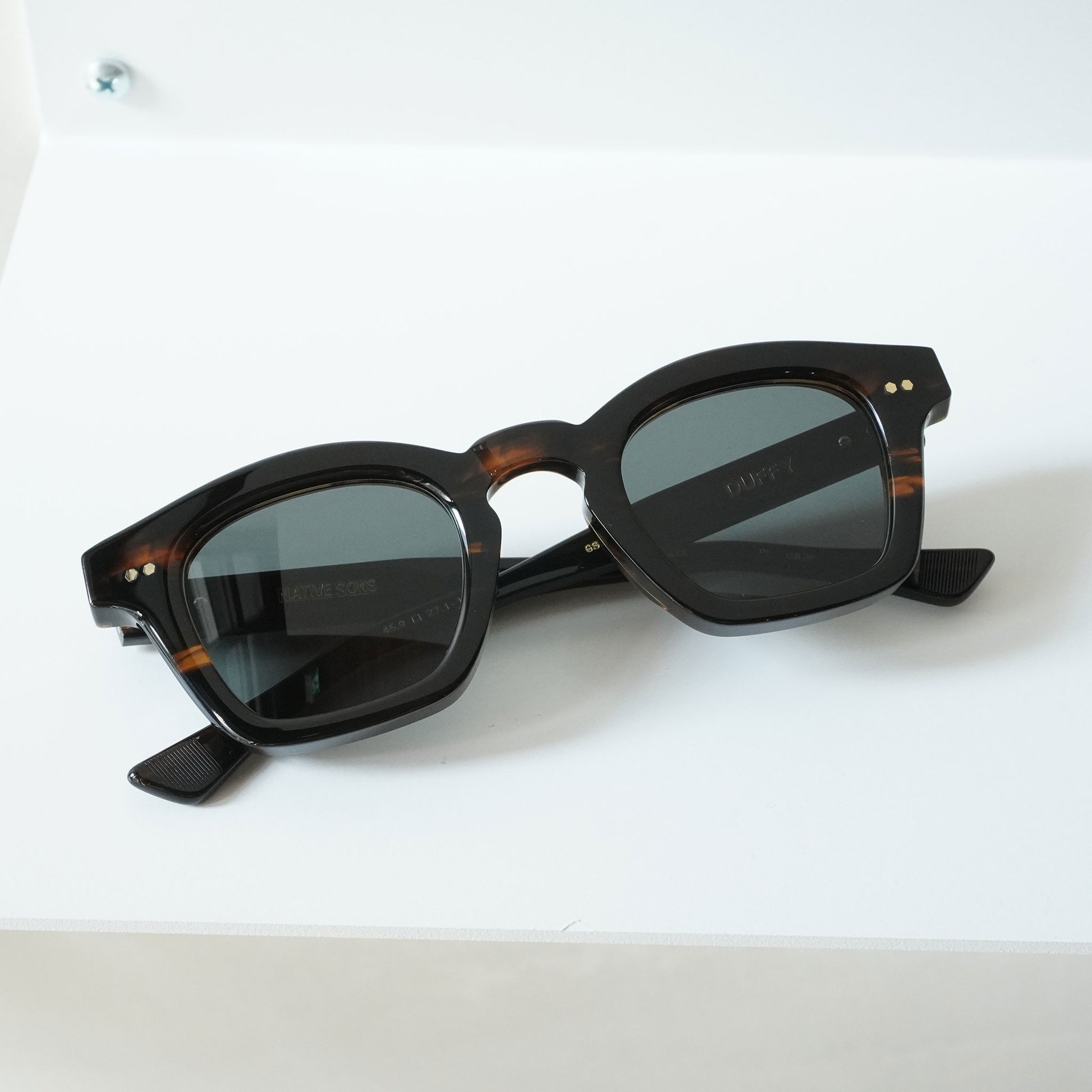 名前の由来: 故郷の近くにある頑固なアイルランド人のバーテンダーにちなんで名付けられたものです。ダフィーは頑固でタフな男で、このフレームもそれにちなんでタフな印象です。トップ ラインは眉に沿って丸みを帯びており、左右のレンズはテンプルの高さと同じノーズブリッジでつながっています。優しさとタフさを兼ね備えたフレームです。