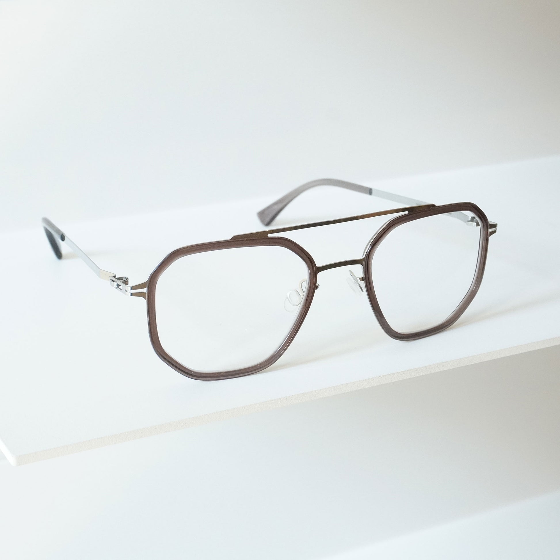 ステンレスとアセテートを組み合わせたコンビネーションフレームです。インパクトを抑えながらオシャレ感の強いツーブリッジフレーム。