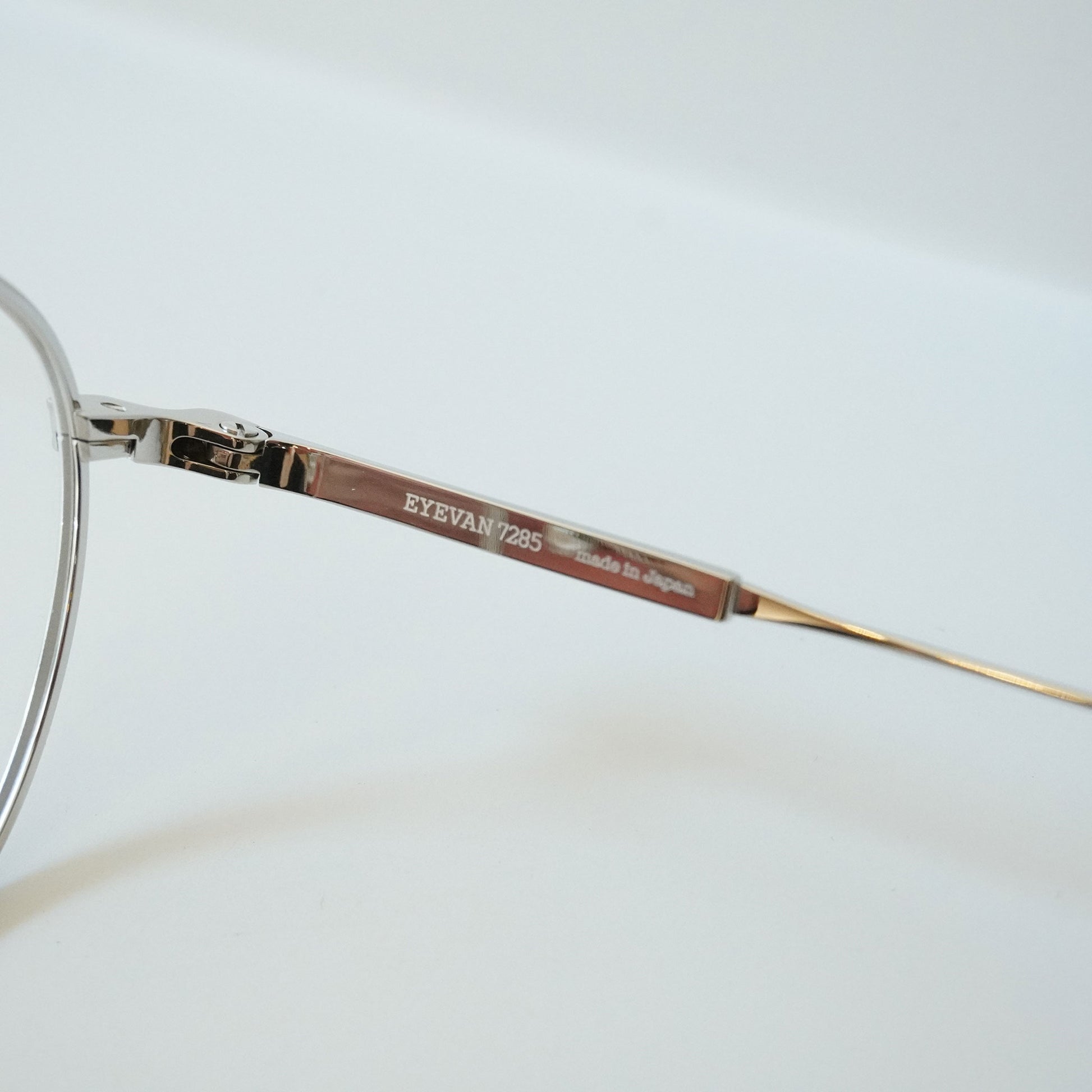 我们将这些众多的设计来源融合在一起,并融入到眼镜产品中。这一理念体现在受 1940 年代法式叉子启发的镜腿、融入 1970 年代眼镜架结构的金属框架,以及受日本古老寺庙的蔓藤花纹启发的图案部件。此外,EYEVAN 7285 产品采用复合生产工艺生产,既有世界级眼镜生产中心福井县鲭江市技艺精湛的眼镜工匠的手工作业,也有采用最新机械的机器制造的产品。这些眼镜融合了传统与新工艺制作而成,很多眼镜乍一看设计简洁随意,但细节却极为精细,许多工序都是由鲭江数量有限的技术精湛的工匠手工完成的。这些眼镜经过一段时间的精心制作,经过约400道工序,可以说是现代手工艺品,而不是工业产品。