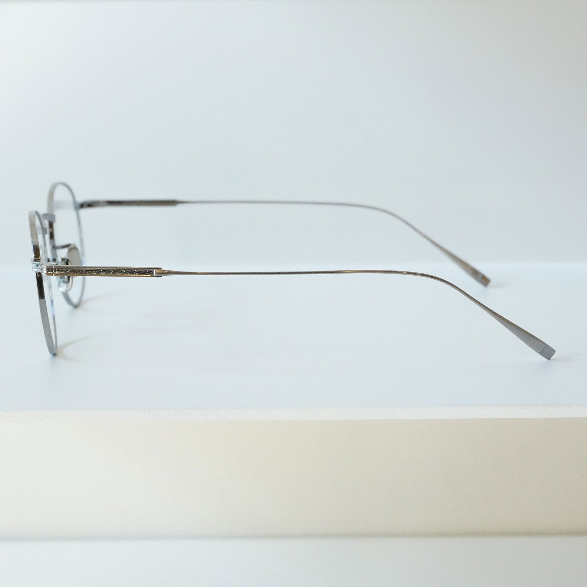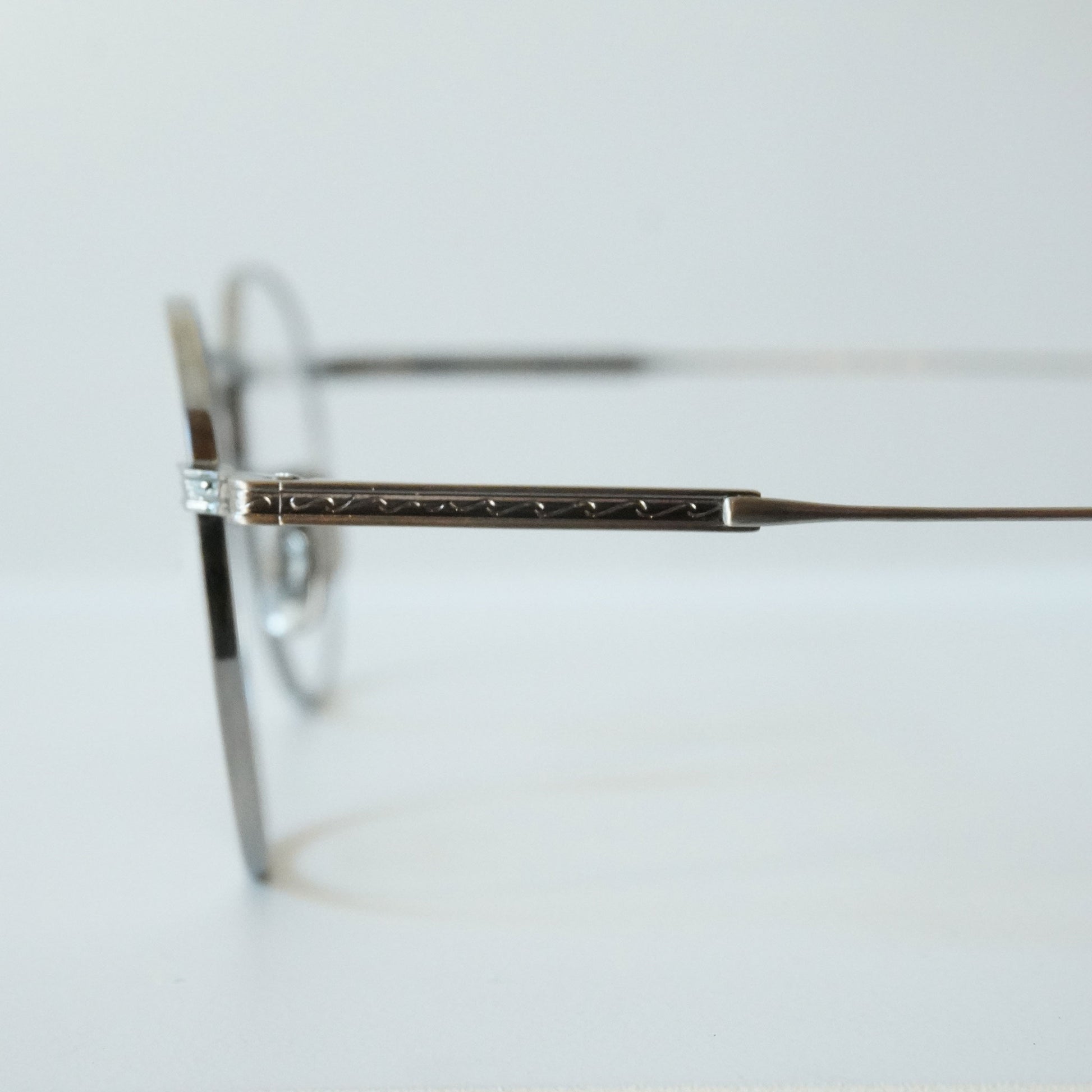 キュビズムを生んだ20世紀の天才画家のスケッチから着想を得たモデル。その手描きの波のような繊細な稜線を手彫り職人の中村氏により忠実にプロダクトに投影させた。テンプルは機構的な要件に応じて、ピュアチタンとβチタンを最適配置しロウ付けにより結合。その巨匠のポートレイトに直接描き上げた印象的な玉型をフロントデザインに採用し、全体像としての文脈的な整合性を確保した。