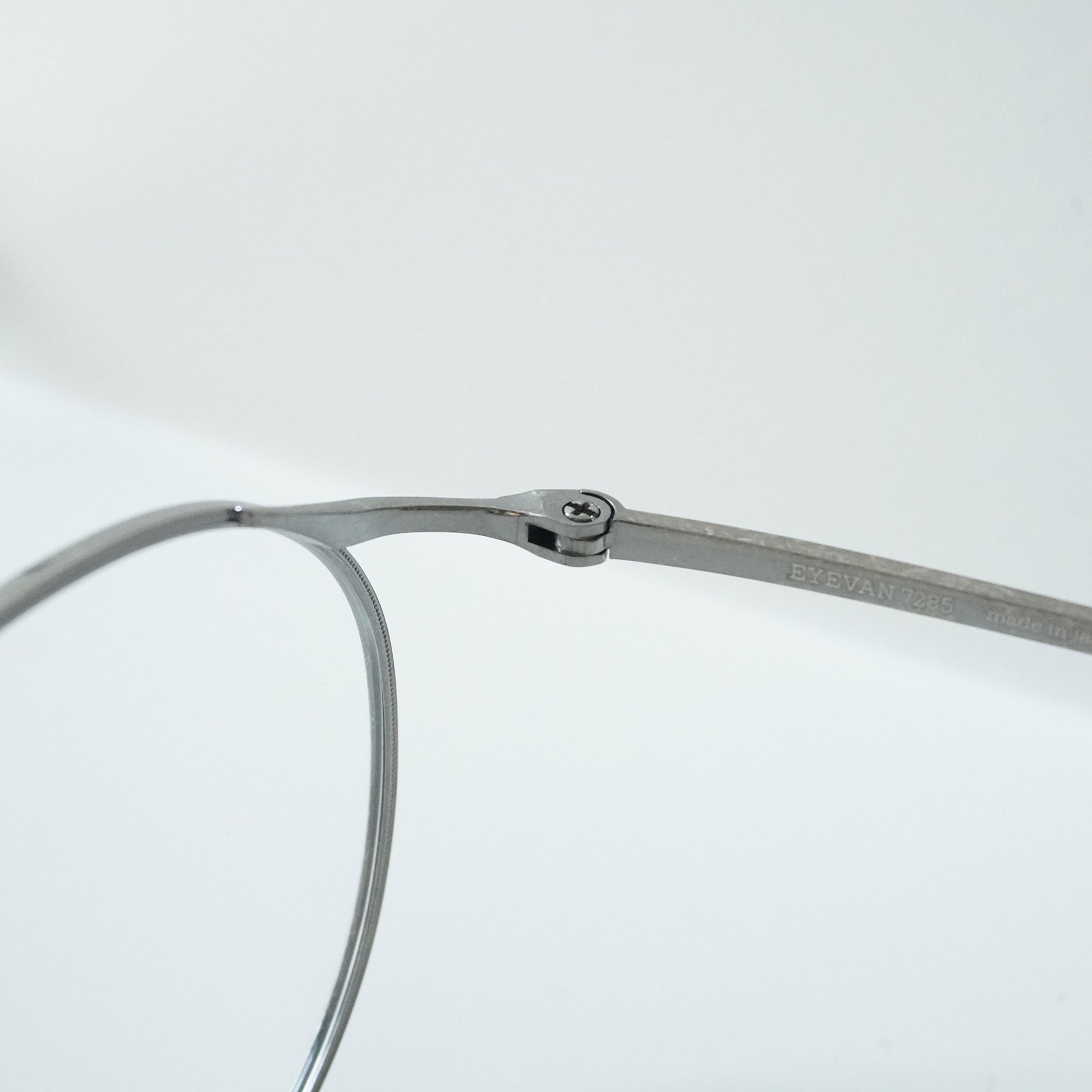 我们将这些众多的设计来源融合在一起,并融入到眼镜产品中。这一理念体现在受 1940 年代法式叉子启发的镜腿、融入 1970 年代眼镜架结构的金属框架,以及受日本古老寺庙的蔓藤花纹启发的图案部件。此外,EYEVAN 7285 产品采用复合生产工艺生产,既有世界级眼镜生产中心福井县鲭江市技艺精湛的眼镜工匠的手工作业,也有采用最新机械的机器制造的产品。这些眼镜融合了传统与新工艺制作而成,很多眼镜乍一看设计简洁随意,但细节却极为精细,许多工序都是由鲭江数量有限的技术精湛的工匠手工完成的。这些眼镜经过一段时间的精心制作,经过约400道工序,可以说是现代手工艺品,而不是工业产品。
